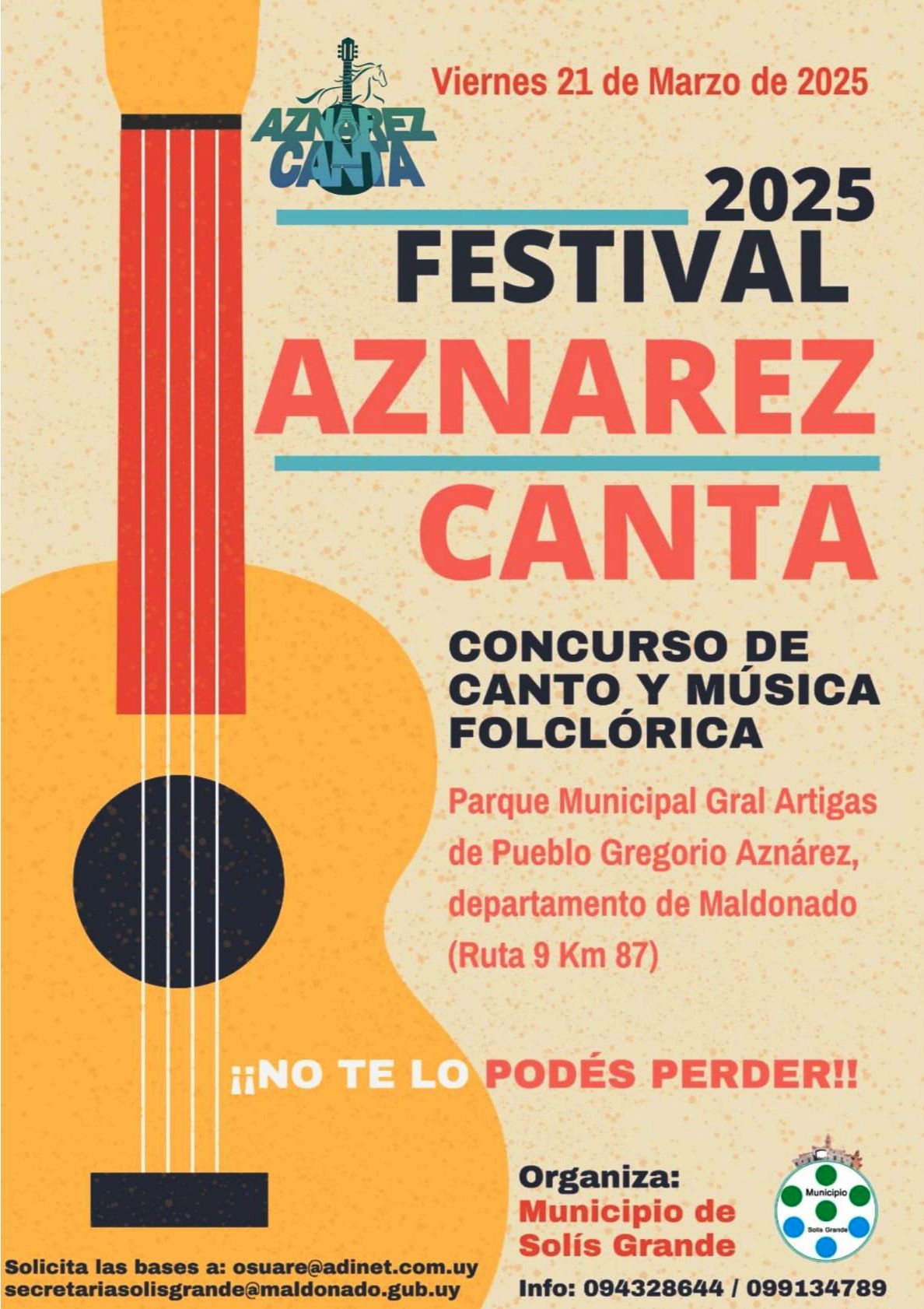 El 13, 14 y 15 de enero de 2017 llega el 7º Festival Folklórico «Pueblo Gregorio Aznárez Canta», a total beneficio de instituciones del pueblo, en el Parque Municipal Gral. Artigas – Ruta 9 km. 87 – Pueblo Gregorio Aznárez.
