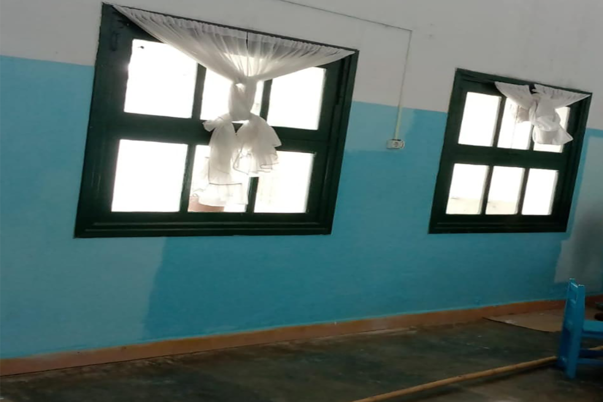 Acondicionan la Escuela 43 de Izcua. Personal municipal pinta el centro escolar de la zona de Cañada de La Cruz, con acceso desde la Ruta Nacional Número 9 «Leonardo Olivera».