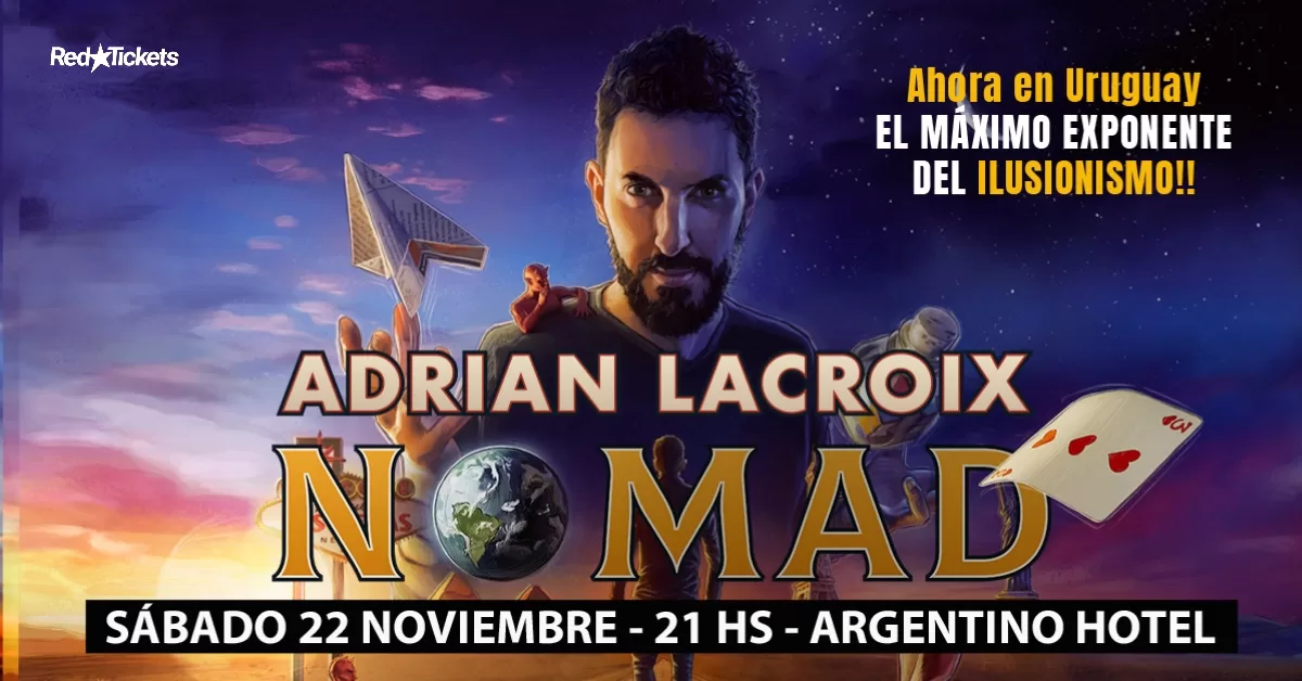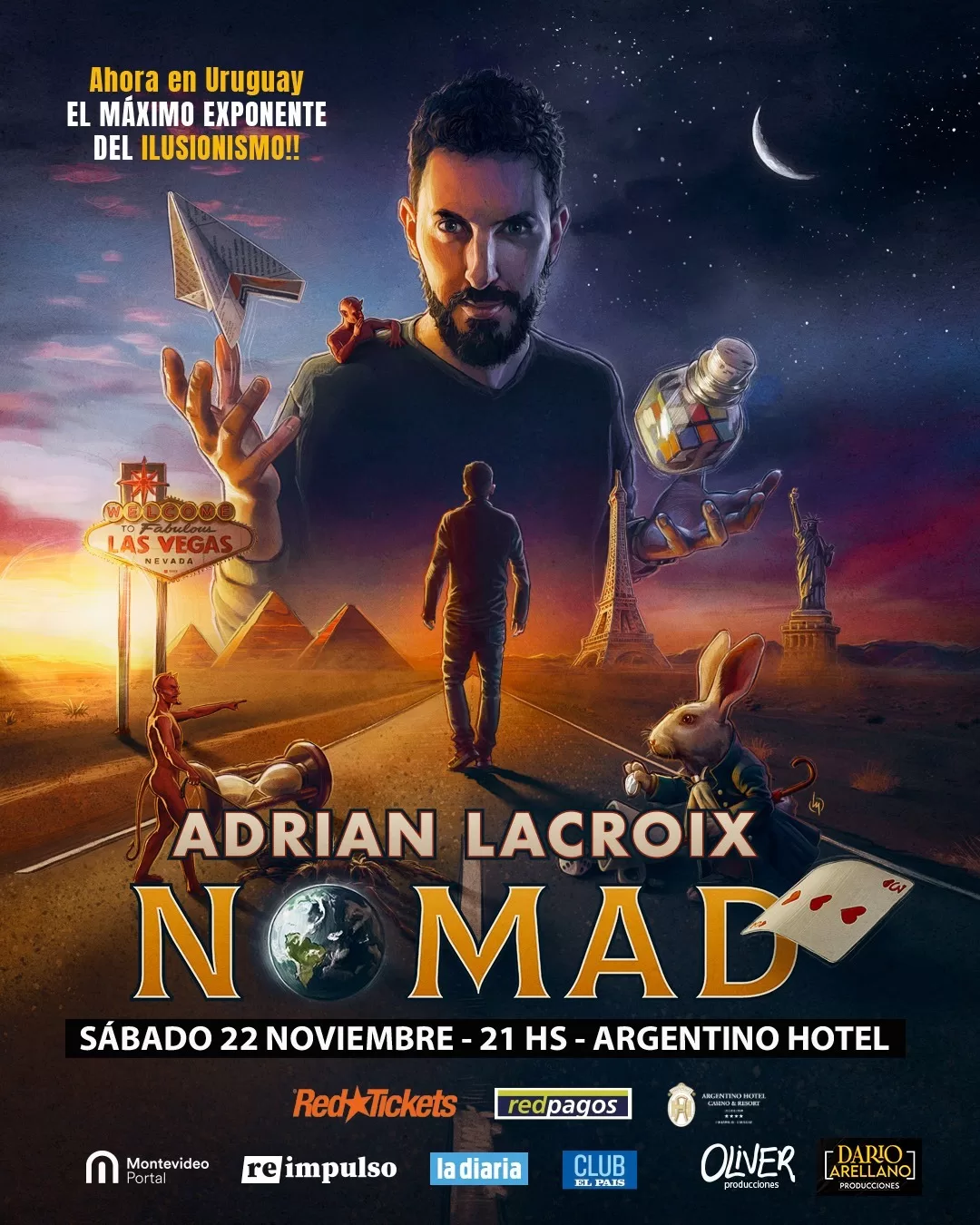 Adrián Lacroix llega a Piriápolis con su espectáculo NOMAD: magia, mentalismo y asombro en el Argentino Hotel. El próximo sábado 22 de noviembre a las 21 horas, el reconocido ilusionista argentino Adrián Lacroix se presentará por primera vez en Piriápolis, inaugurando su nueva gira mundial con el espectáculo NOMAD, una propuesta que fusiona mentalismo, ilusionismo e innovación escénica. Entradas en venta en Redtickets y en el hotel.