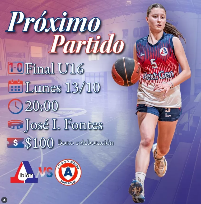 Albión celebra 78º aniversario con finalísima ante Ateneo en basket femenino Sub 16. Este lunes, 13 de octubre, el Club Albión BBC de Pan de Azúcar celebra su 78.º aniversario con una jornada especial que combina deporte, tradición y compromiso comunitario. En el marco de los festejos, se disputará la final del Campeonato Femenino de Básquet Sub 16, donde el equipo local enfrentará a su tradicional rival, Ateneo de Piriápolis. La instancia definitoria se jugará en la cancha de Albión, estadio José I. Fontes, a partir de la hora 20:00.