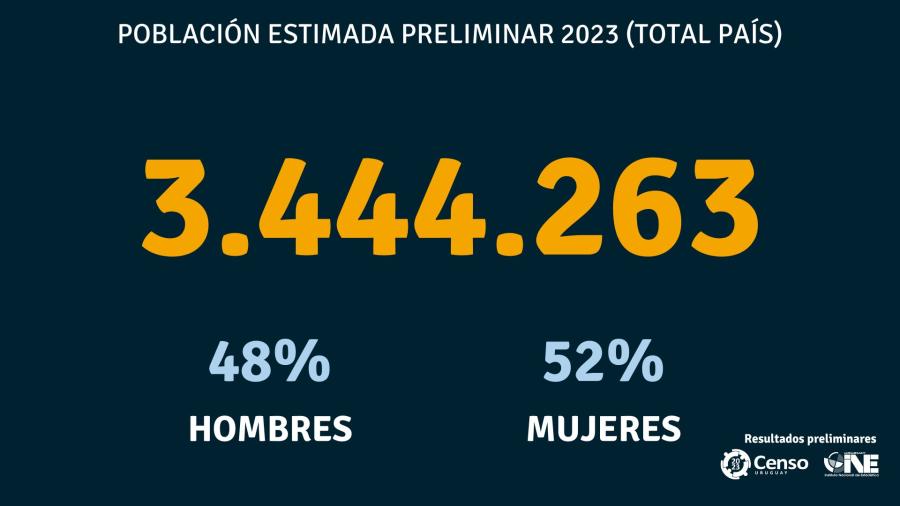 Según el Censo 2023 la estimación preliminar de población residente en Uruguay es de 3.444.263 personas.
