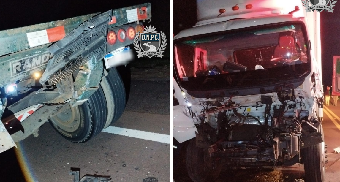 Choque de camiones en Ruta 5 deja un conductor en estado grave. Un siniestro de tránsito con saldo grave se registró este jueves 4 de setiembre, a las 20:20 horas, en el kilómetro 338 de la Ruta 5, a la altura de Curtina, departamento de Tacuarembó. Por causas que aún se investigan, se produjo una colisión por alcance entre dos camiones que circulaban en dirección Sur-Norte. El impacto, de tipo “choque de atrás”, dejó como saldo lesiones de gravedad en el conductor del vehículo que embistió, quien quedó atrapado en la cabina y debió ser rescatado por personal de Bomberos.