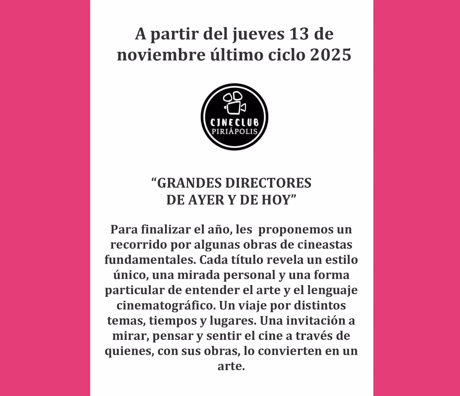 Organiza: Cineclub Piriápolis Ciclo: Grandes Directores de Ayer y de Hoy