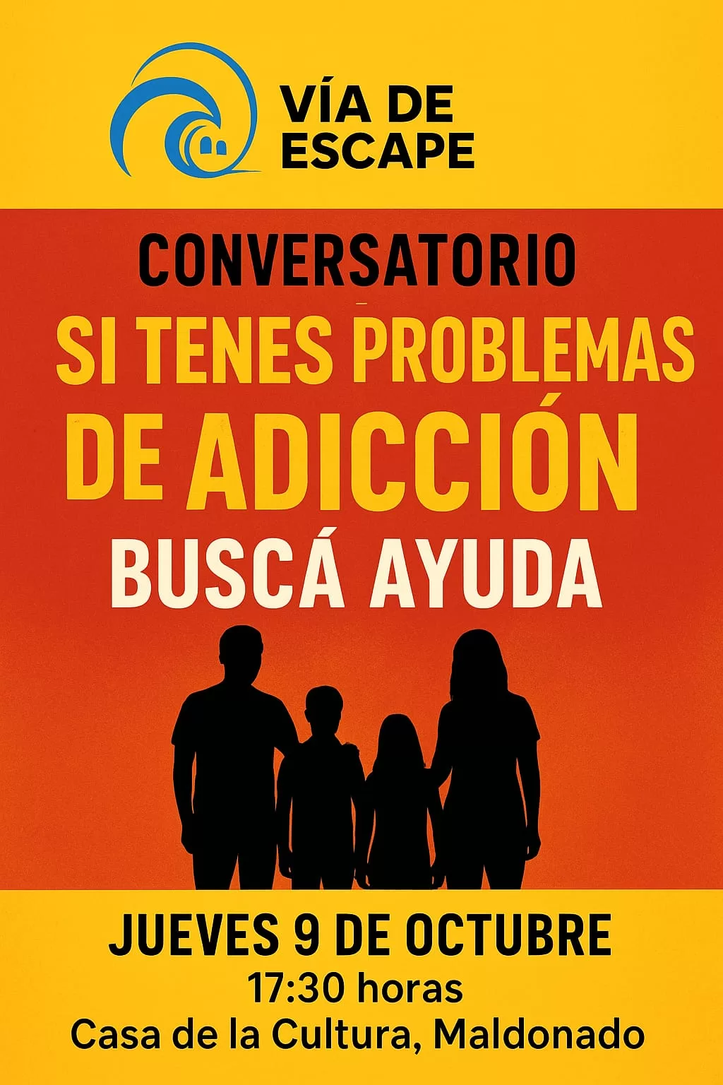 Conversatorio sobre adicciones en la Casa de la Cultura de Maldonado. El encuentro estará a cargo de Julio España, director de la ONG Vía de Escape, un centro especializado en rehabilitación de adicciones. La actividad tiene como objetivo brindar información, orientación y herramientas de apoyo a personas que enfrentan problemas de adicción, así como a sus familiares y a la comunidad en general.