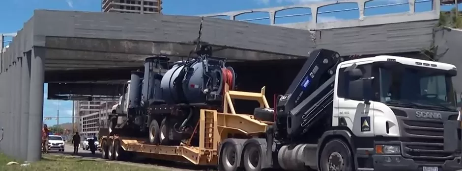 Próximo a la hora 11:47, en el viaducto de Accesos y Bvar. Artigas, en dirección este a oeste, al pasar debajo del puente de Bvar. Artigas, el camión transportado colisiona por exceso de altura con el último pilar del puente quedando este atascado, comprometiendo uno de los pilares del puente.