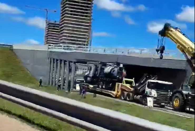 Error de cálculo: camión de Ancap que venía para el arroyo Solís Grande por la perdida de hidrocarburos chocó contra un puente en Montevideo. El camión cigüeña de Ancap que este sábado quedó trancado con un puente en los accesos de Montevideo fue retirado del lugar sobre las 3 de la madrugada de este domingo, y funcionarios continúan trabajando en la zona, por lo tanto la ruta continúa obstruida, informa Subrayado.