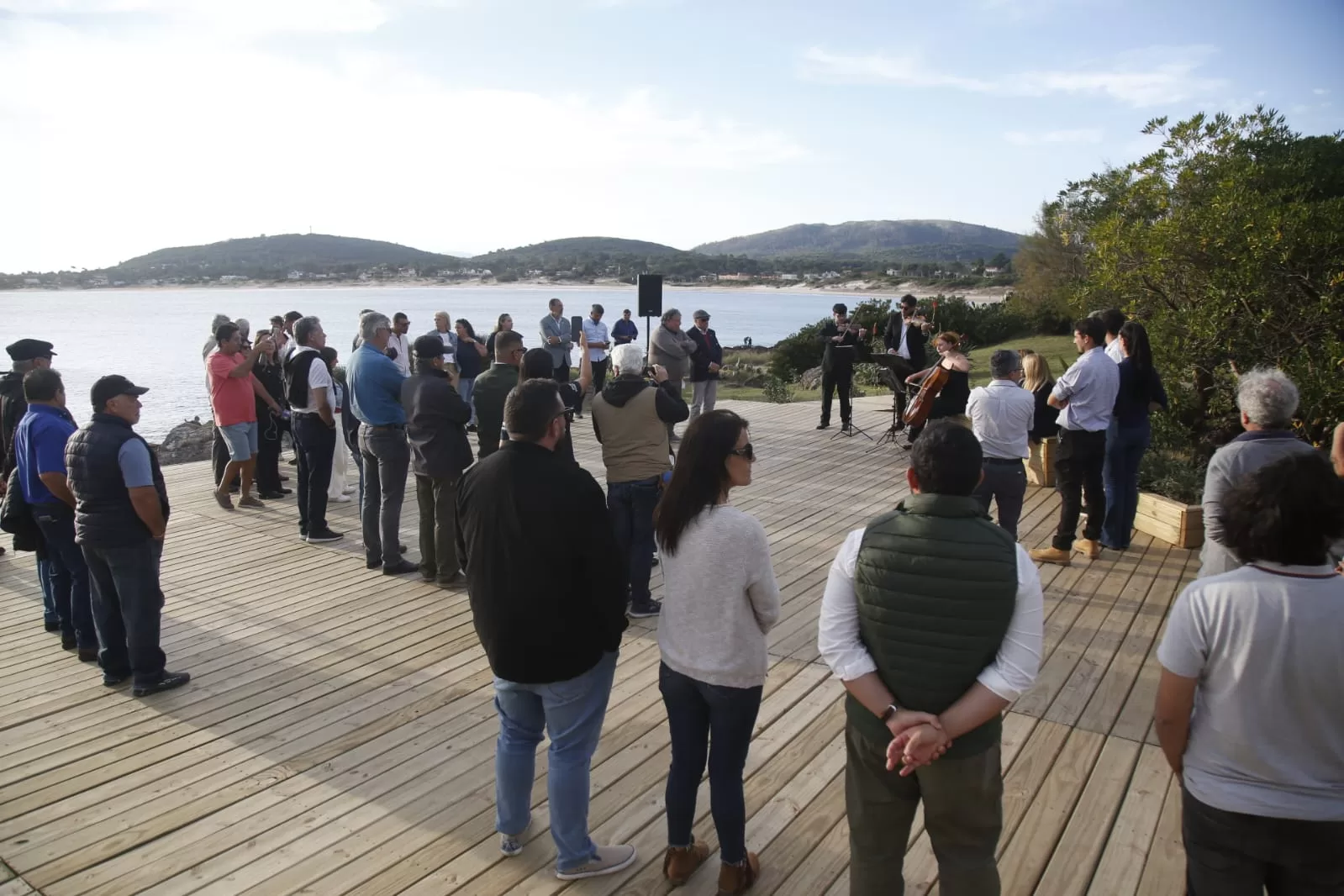 La inauguración, que tuvo lugar en un ambiente festivo minutos antes del ocaso, contó con la presencia de vecinos, autoridades locales, departamentales y nacionales, quienes disfrutaron de una presentación de la Camerata de cuerdas de la dirección de Cultura, celebrando así un nuevo hito para el disfrute y la valorización del patrimonio natural de Maldonado.