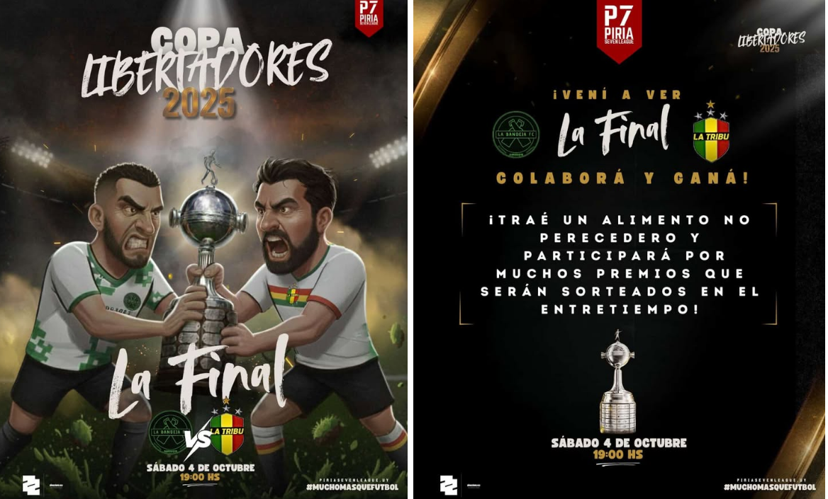 Este sábado 4 de octubre, a las 19:00 horas, el Complejo Puro Fútbol será escenario de una jornada que promete emoción, comunidad y compromiso social con la gran final de la 1ª Copa Libertadores de la Piria Seven League. Los equipos La Bandeja y La Tribu vuelven a encontrarse en una definición que despierta expectativas entre jugadores, vecinos y seguidores del fútbol barrial. Como cada sábado, el evento reunirá a familias, amigos y aficionados, pero esta vez con un componente especial: el aporte solidario de todos los asistentes.