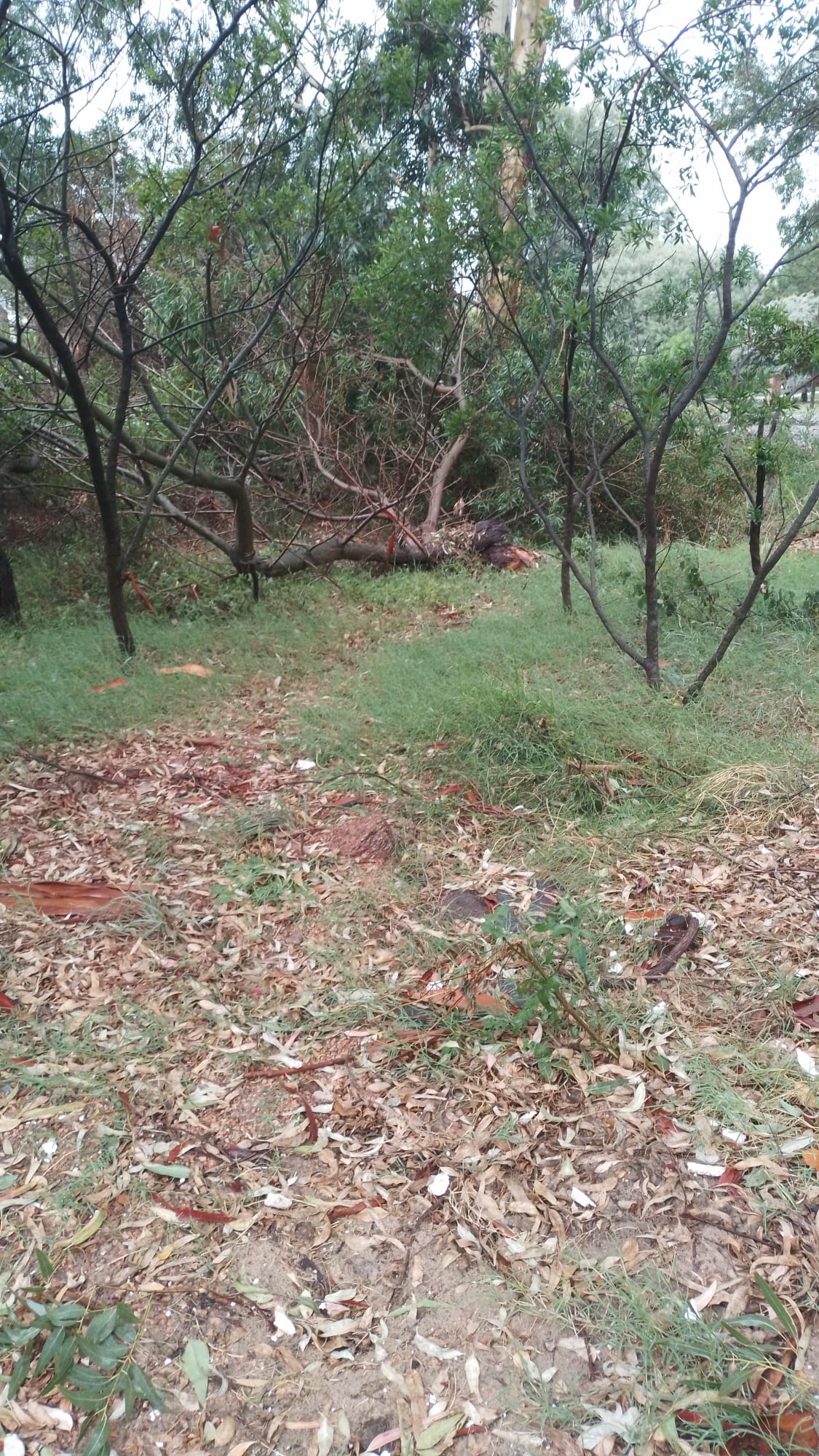 Yo resido en Playa Grande en el perímetro de la hermosa Ciudad de Piriápolis y sucedió que enfrente a nuestra cabaña existía un enorme y centenario eucaliptus con cinco enormes brazos con diámetros de aproximadamente 0.20 cms. Eso nos da una idea del peso importante del árbol en cuestión.