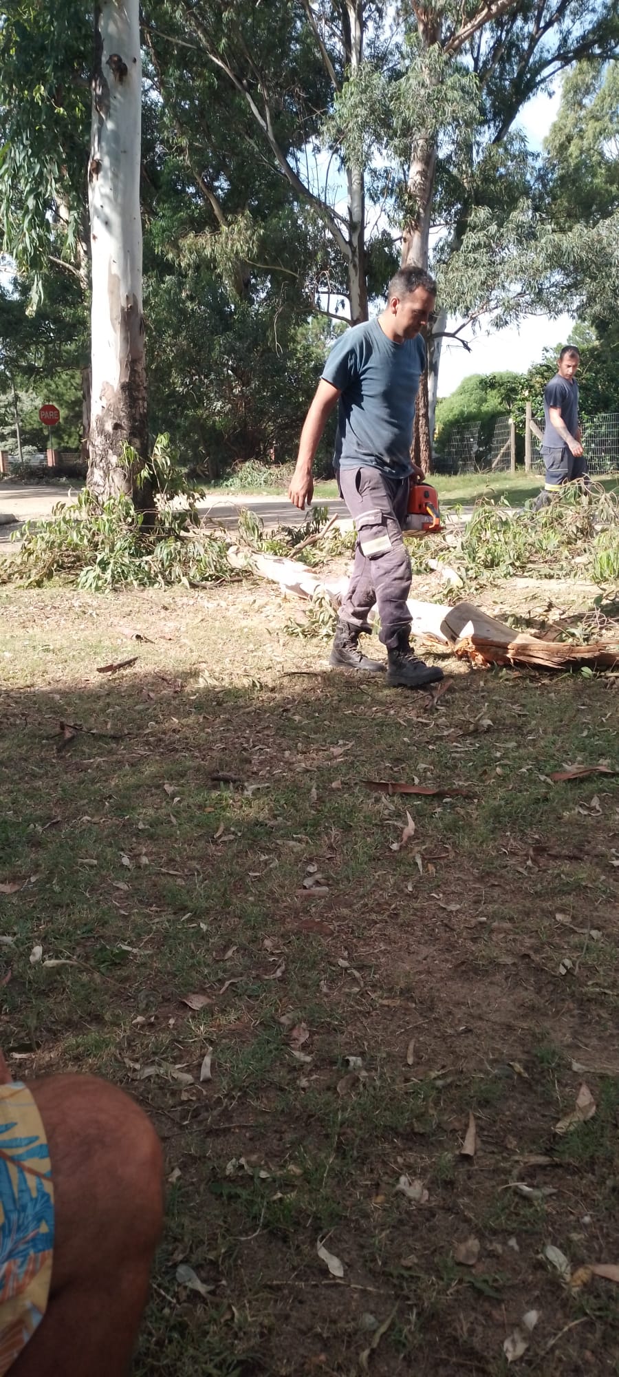 Sucedió que luego de algunos eventos peligrosos de viento nos alarmamos en el transcurso del mes de noviembre pasado y nos presentamos en el Comunal a denunciar la situación de riesgo. Luego se apersona un Ingeniero que nos explica que la máquina necesaria para operar en ese árbol no estaba disponible en esta localidad, por tal motivo se debía esperar el regreso. En los meses sucesivos se siguió la gestión y en una de nuestras reiteradas concurrencias nos informaron que probablemente contratarían una máquina para solucionar.