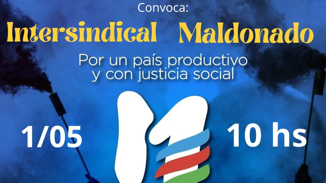 Intersindical Maldonado convoca al acto del 1 de mayo: por un país productivo y con justicia social hacia el triunfo popular. Será a la hora 10:00 de este miércoles, 1 de mayo de 2024, en Joaquín de Viana y Florida, en la capital fernandina. Espectáculos artísticos, oratoria.
