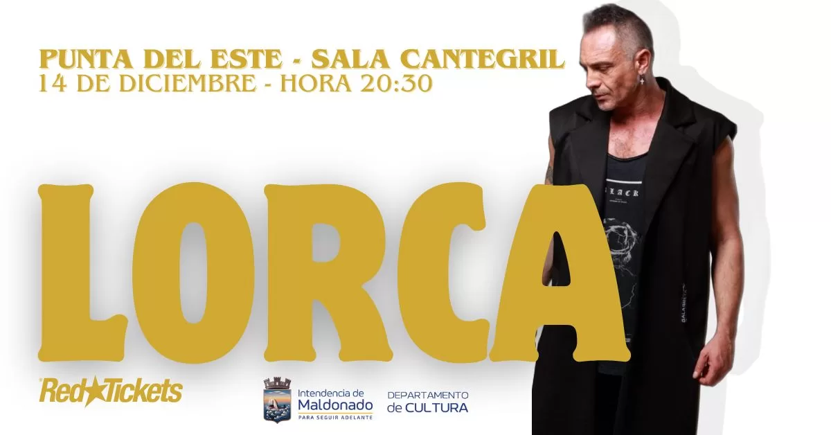 LORCA regresa a Uruguay con show en Sala Cantegril. El domingo 14 de diciembre a las 20 horas, el reconocido cantautor LORCA se presentará en la Sala Cantegril de Punta del Este, en el marco de un espectáculo que celebra sus 30 años de trayectoria artística. Autor e intérprete de éxitos que han alcanzado el top ten, como “El Tren del Olvido”, “Besama la Boca” y “Te quiero pa’ mí”, LORCA ofrecerá un show con banda completa, recorriendo sus clásicos y presentando lo más reciente de su repertorio.