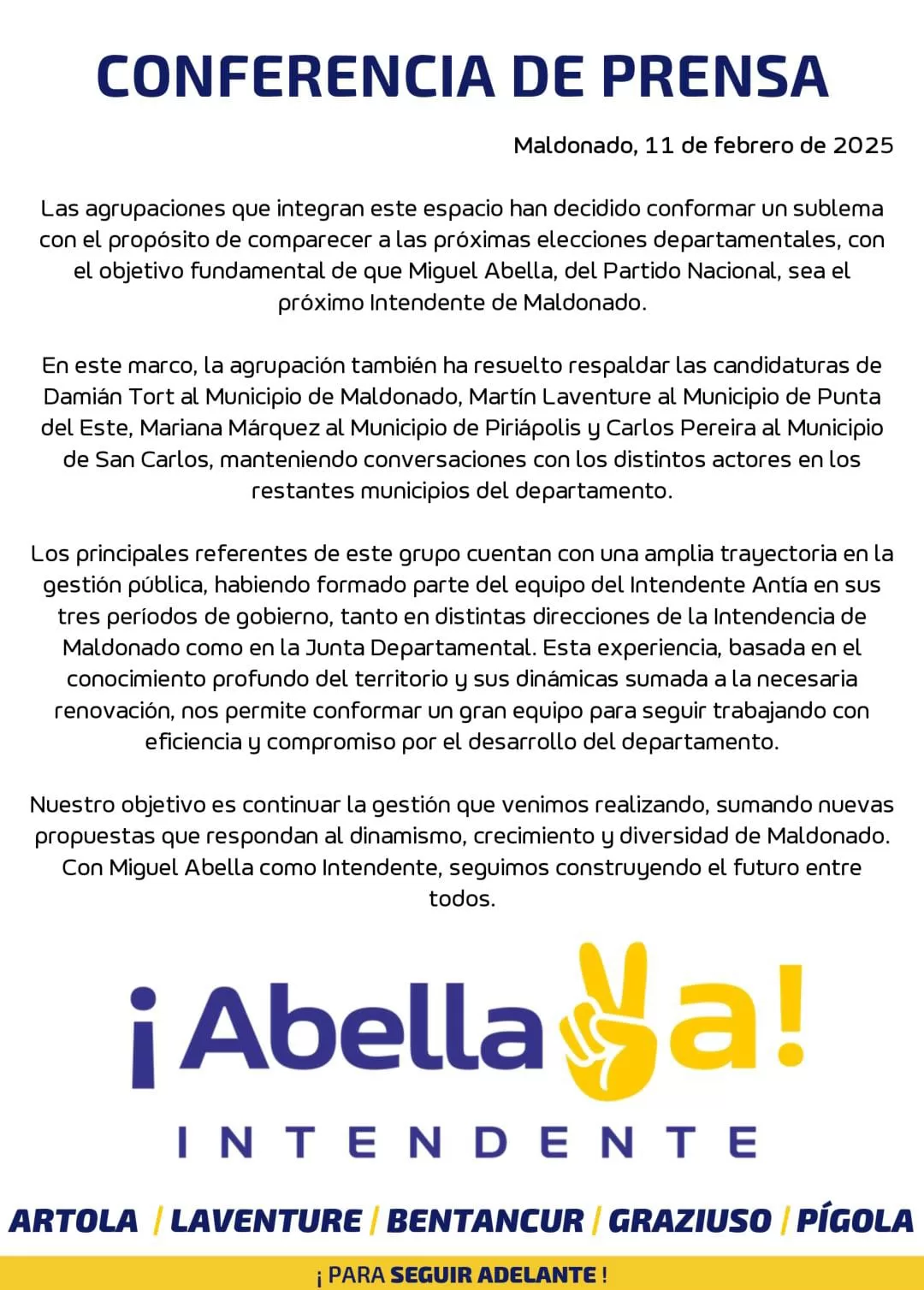 Mariana Márquez será candidata a alcadesa de Piriápolis por el sector que apoya a Miguel Abella a la Intendencia de Maldonado. Confirmada la alianza de Luis Artola, Adriana Graziuso, Martín Laventure, Jesús Bentancur y Juan Pígola, apoyando la candidatura de Miguel Abella a la Intendencia de Maldonado, se resolvió por consenso impulsar, en Pirápolis , la candidatura de Mariana Márquez. La actual concejal del Partido Nacional buscará convertirse en la alcaldesa del Municipio Piriápolis en las elecciones municipales del 11 de mayo próximo.