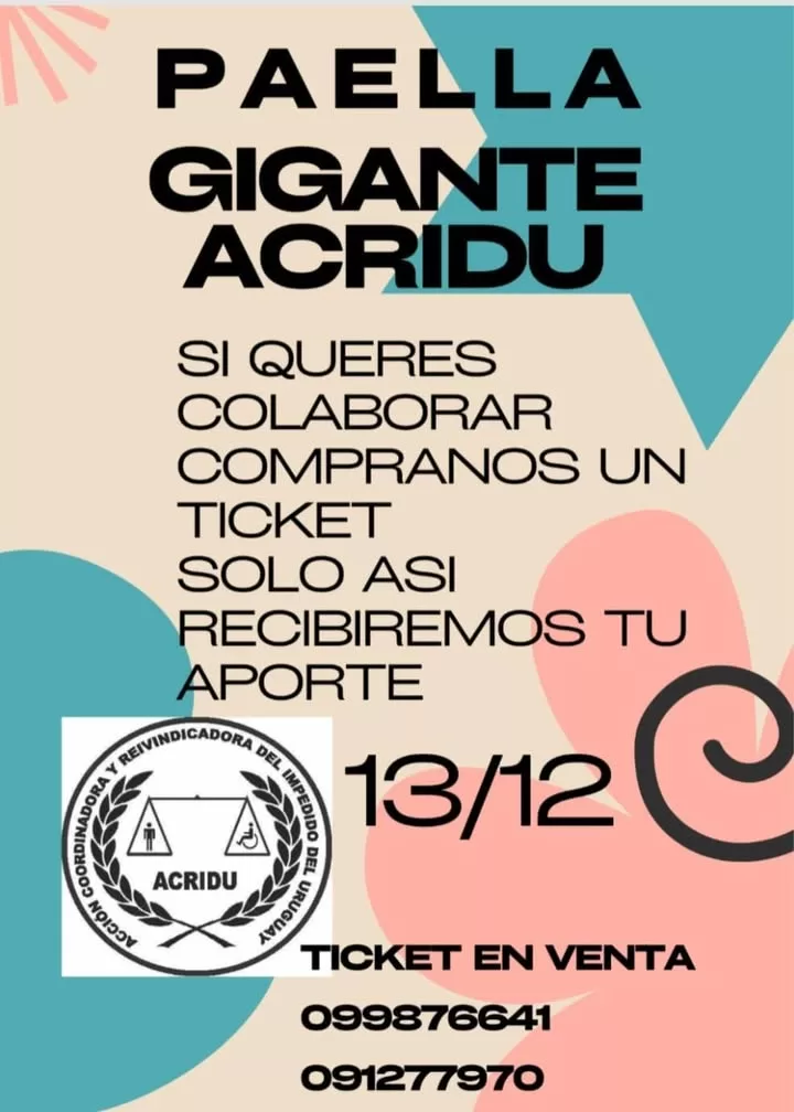 Los interesados en colaborar pueden solicitar sus tickets a través de los números de WhatsApp publicados en el flyer oficial de Acridu: 099 876 641 y 091 277 970.