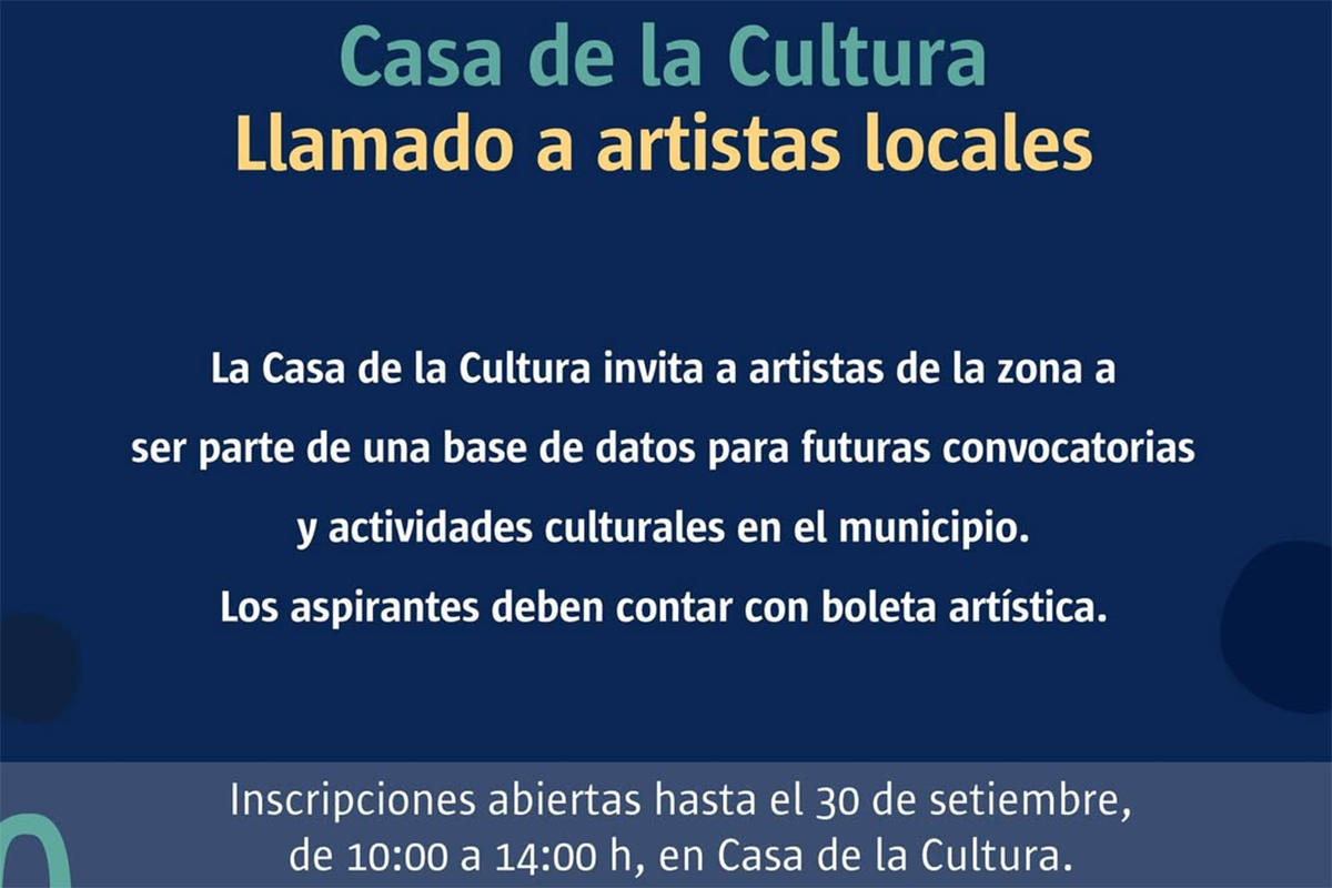 La Casa de la Cultura de Piriápolis abrió la inscripción para artistas de la jurisdicción municipal, con el objetivo de actualizar el registro local y fortalecer la participación en futuras actividades organizadas por el Municipio. El plazo se extiende hasta el 30 de septiembre, de lunes a viernes entre las 10 y las 14 horas.