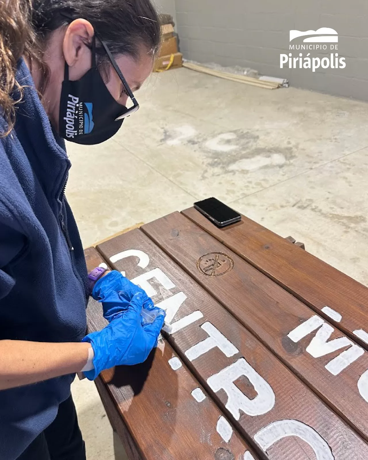 Piriápolis: Melina Cruz Bonilla, guardaparque y artesana, diseña el cartel del Centro Comunal de Pueblo Obrero. El Municipio de Piriápolis desea compartir con la comunidad una tarea especial que se desarrolla puertas adentro, pero que pronto lucirá en su lugar definitivo: se trata de la confección artesanal del cartel que identificará al Centro Comunal de Pueblo Obrero.