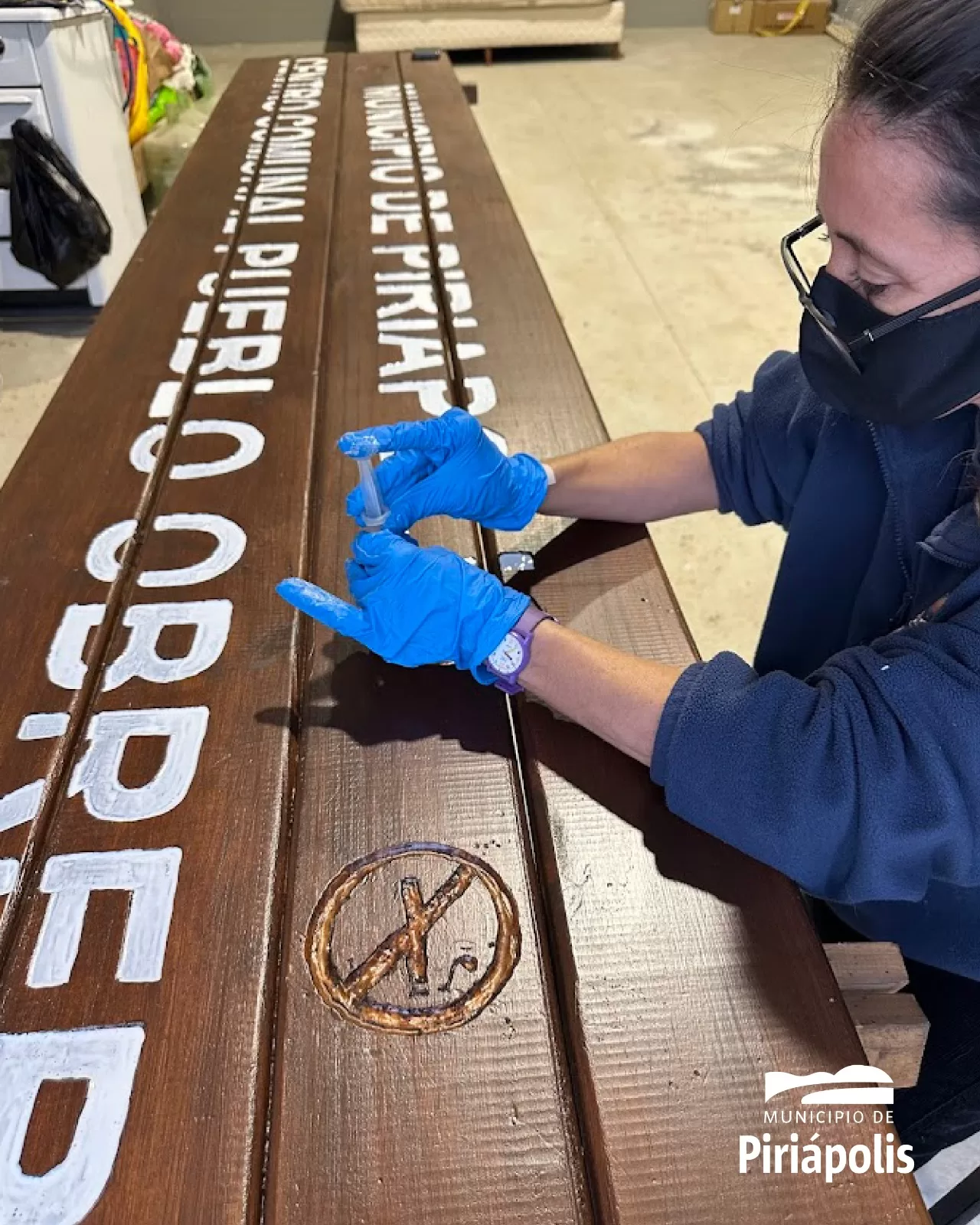La labor está siendo realizada por la pasante de guardaparque Melina Cruz Bonilla, quien lleva adelante un meticuloso proceso de tallado sobre madera, utilizando herramientas como router y formol. Las letras, cuidadosamente delineadas, fueron rellenadas con varias capas de esmalte sintético, dando como resultado una pieza única, cargada de dedicación, técnica y sensibilidad estética.