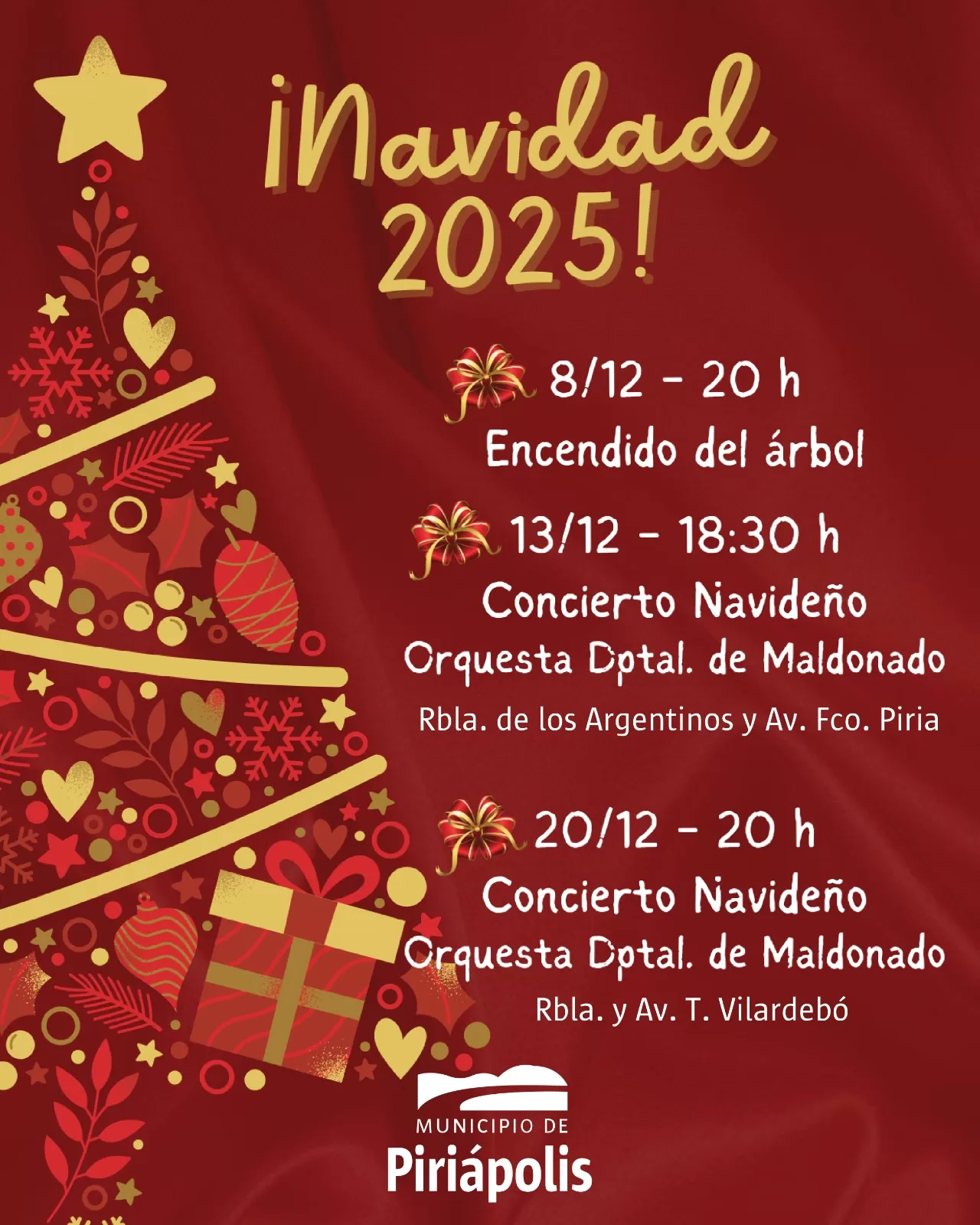 Piriápolis vive la magia de la Navidad! Concierto navideño de la Orquesta Departamental este sábado en la rambla. Piriápolis se prepara para vivir una noche especial con el Concierto Navideño de la Orquesta Departamental de Maldonado, que tendrá lugar este sábado 13 de diciembre a las 18:30 en la Rambla y avenida Piria, con entrada libre y gratuita para toda la familia.