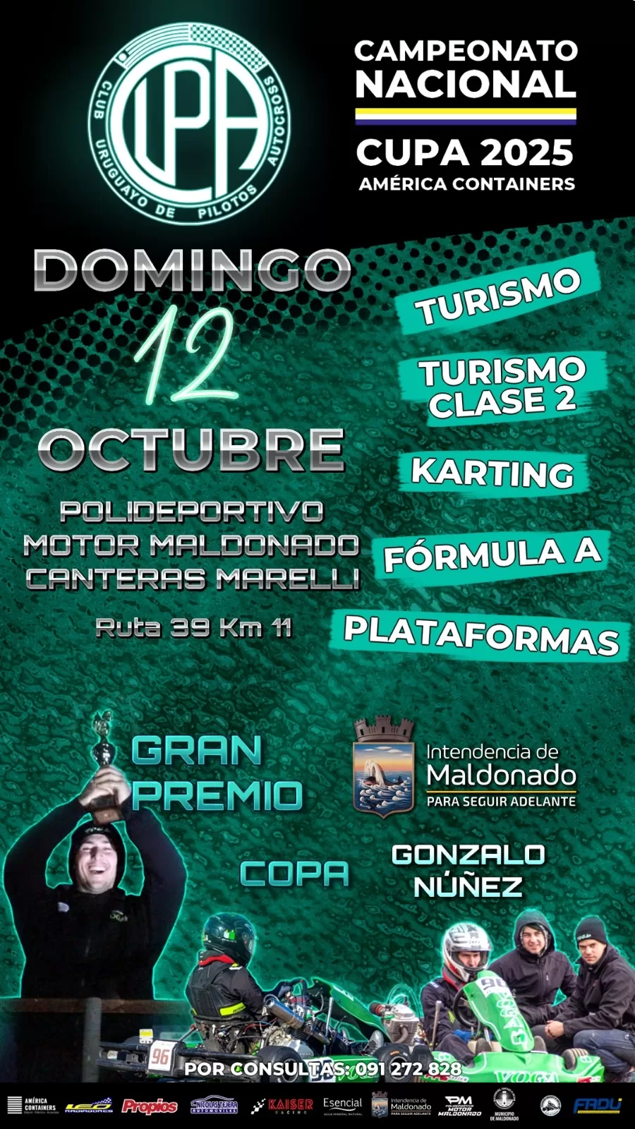 Polideportivo Motor recibirá la séptima fecha del Campeonato Nacional CUPA. El Club Uruguayo de Pilotos Autocross regresa a Maldonado en el marco de la séptima fecha de su campeonato y disputará el Gran Premio Intendencia de Maldonado Copa «Gonzalo Núñez». El evento deportivo tendrá lugar el domingo 12 de octubre en el Polideportivo Motor, ubicado en el kilómetro 11 de la Ruta 39 -Canteras de Marelli-.