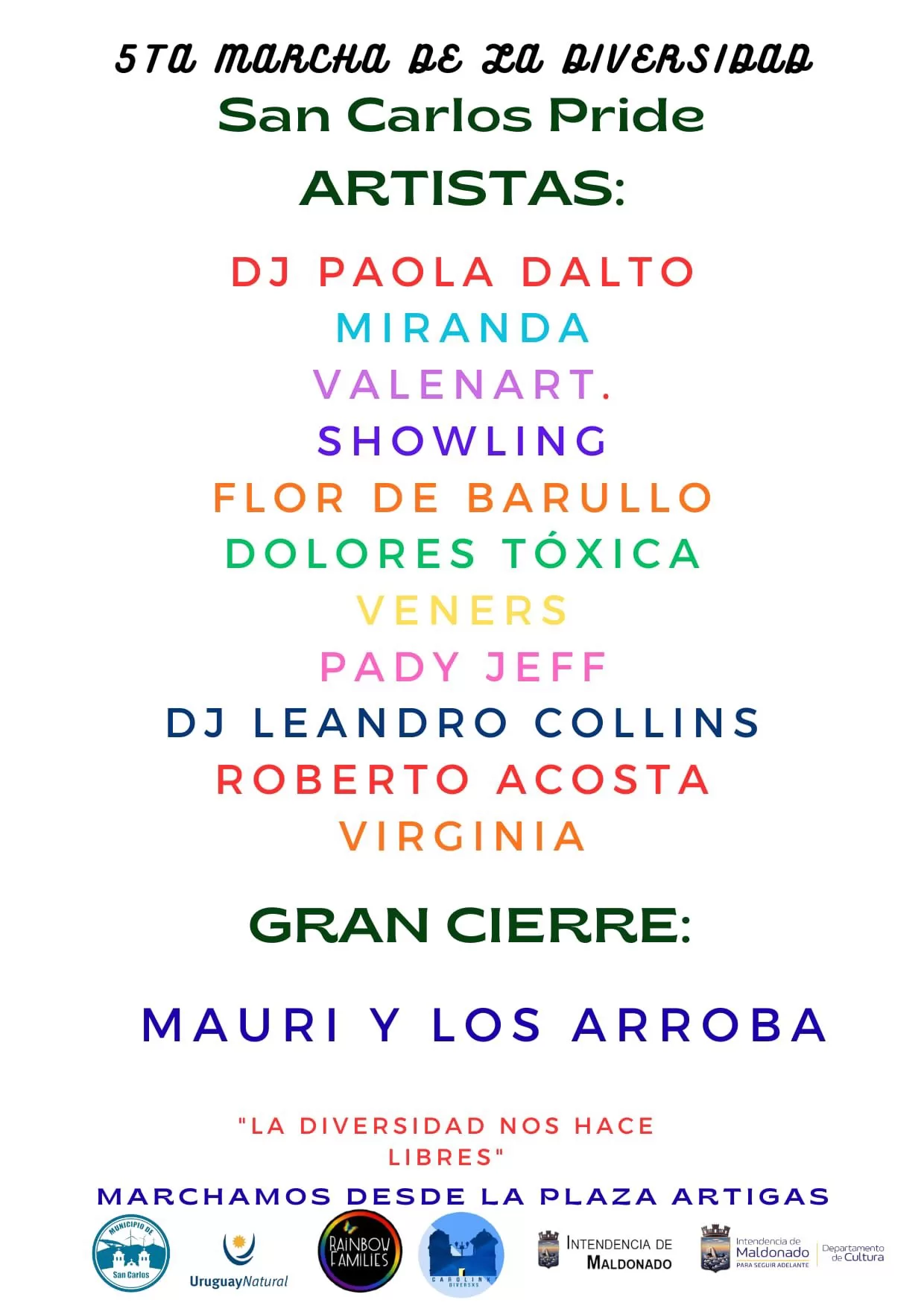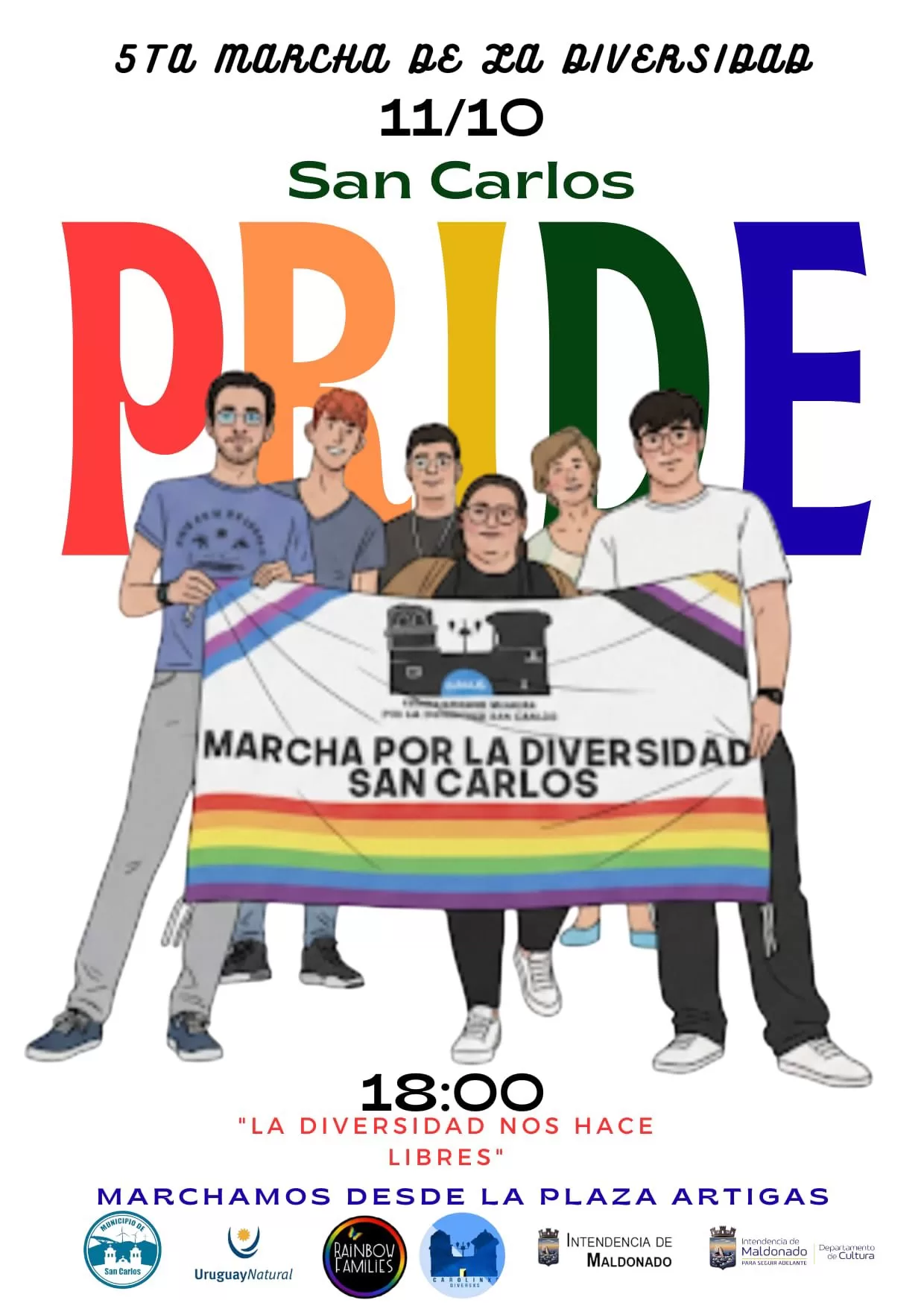 San Carlos celebra la 5.ª Marcha por la Diversidad con feria, música y compromiso ciudadano. Este sábado 11 de octubre, San Carlos será escenario de la 5.ª edición de la Marcha por la Diversidad, bajo la consigna “La diversidad nos hace libres”. La jornada, que se desarrollará en Plaza Artigas, convoca a vecinos, organizaciones sociales y autoridades en una instancia de encuentro, respeto y celebración por los derechos y la inclusión.