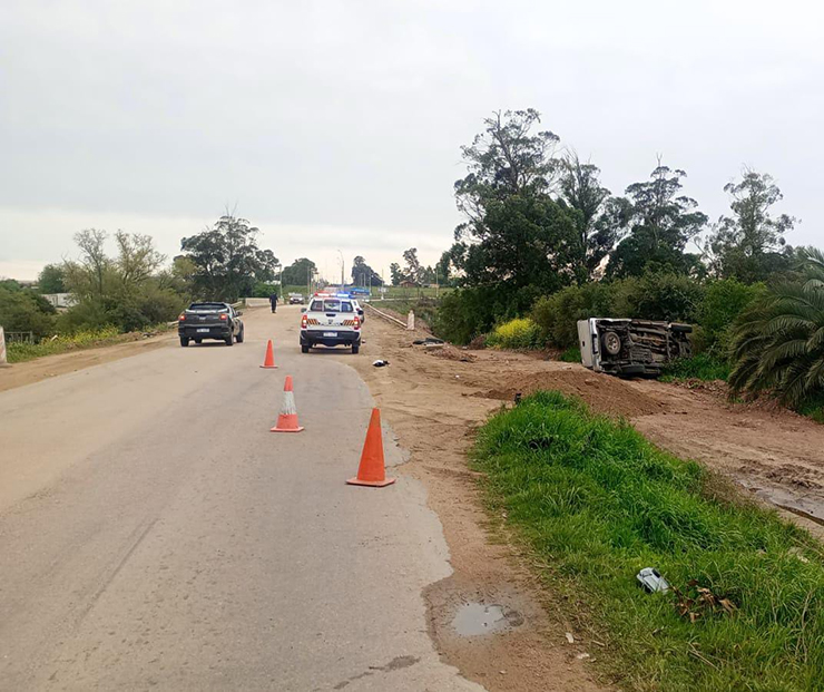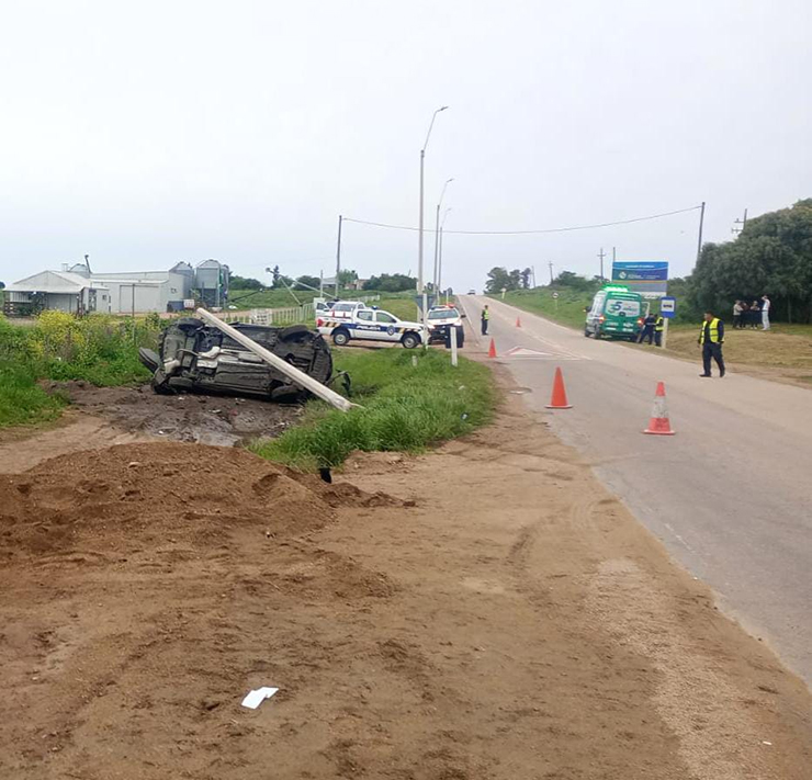 A raíz del violento impacto, el auto es despedido chocando contra una columna y volcando, a su vez, la camioneta, luego del impacto, vuelca quedando en posición lateral, ambos vehículos fuera de ruta.