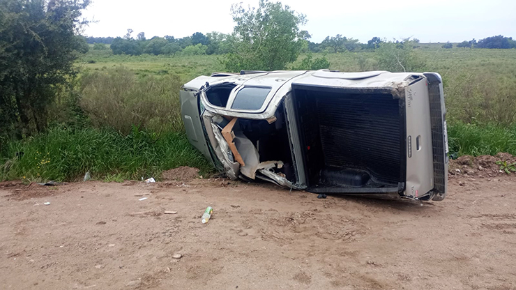 A raíz del violento impacto, el auto es despedido chocando contra una columna y volcando, a su vez, la camioneta, luego del impacto, vuelca quedando en posición lateral, ambos vehículos fuera de ruta.