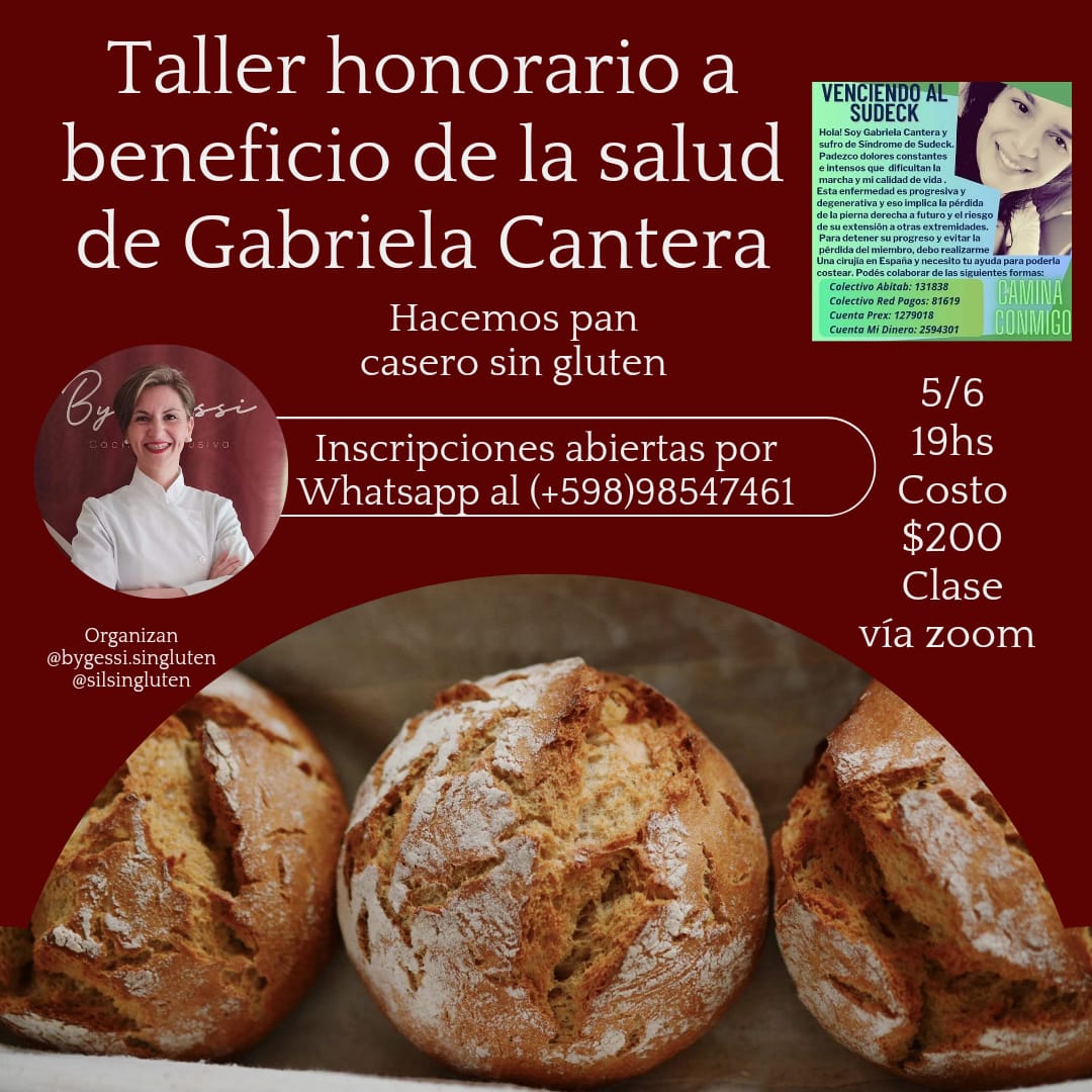 Todos por Gabriela! Taller honorario para elaborar pan casero sin gluten será a total beneficio de Gabriela Cantera; sumate y apoyá! Será el martes 5 de junio de 2023 a las 19:00 horas vía Zoom. Estará a cargo de la reconocida chef gastronómica para celíacos Gessika Lusich y el costo de la inscripción es de 200 pesos. Las inscripciones se realizan por Whatsapp al (+598) 9854 7461. Lo recaudado será destinado totalmente a la vecina de Piriápolis, Gabriela Cantera (33), que padece síndrome de Sudeck y necesita recaudar unos 45.000 dólares para viajar a España y someterse a una microcirugía que podría poner fin a su grave enfermedad. Como ya ha informado semanario La Prensa, se trata de una enfermedad crónica, progresiva y degenerativa, contraída tras sufrir un siniestro de tránsito. La enfermedad le provoca un dolor insoportable y permanente en una de sus piernas, con la amenaza latente que se extienda al resto de sus miembros.