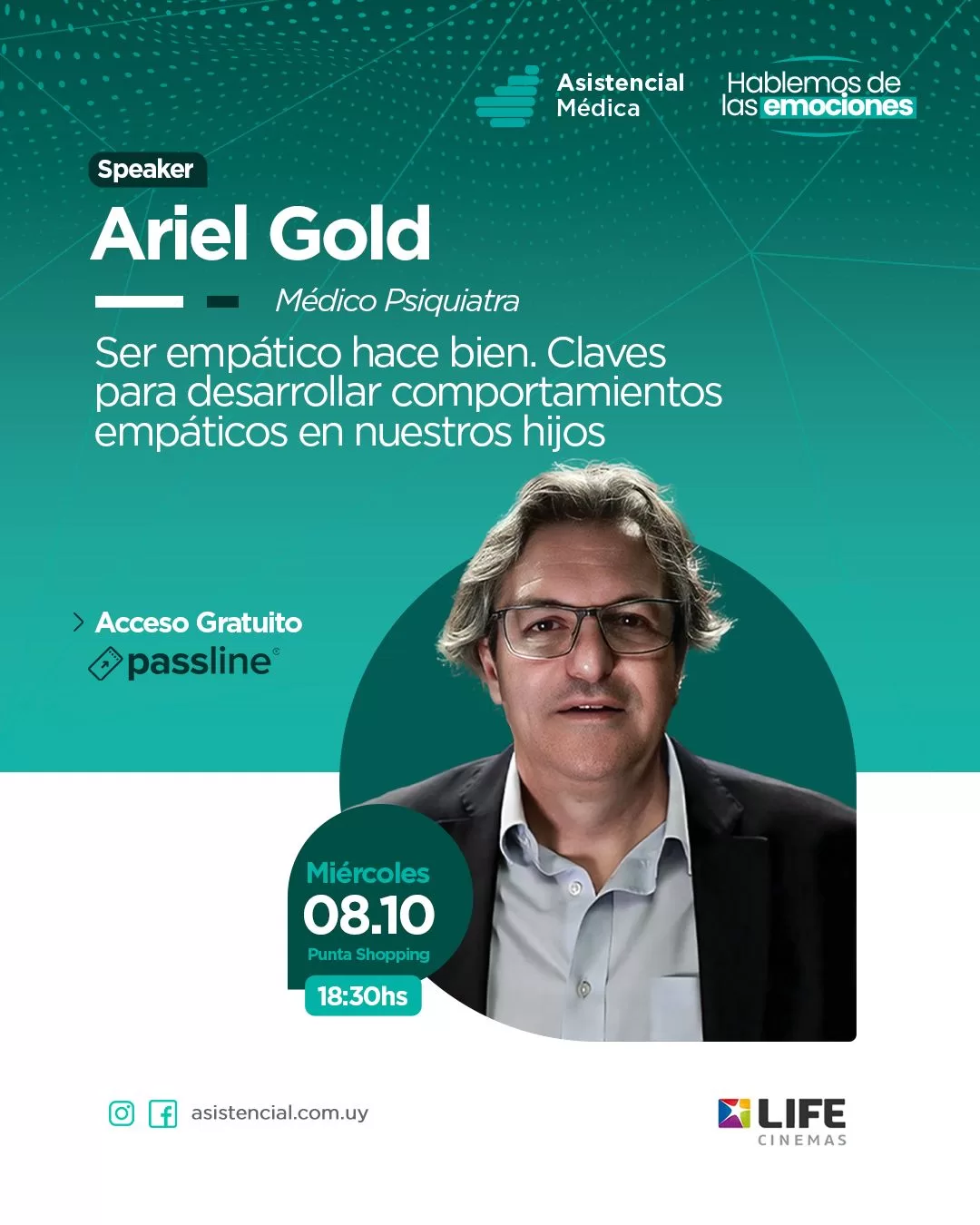 La actividad tendrá lugar en Life Cinemas de Punta Shopping y estará a cargo del Dr. Ariel Gold, médico psiquiatra, quien abordará el tema: “Ser empático hace bien. Claves para desarrollar comportamientos empáticos en nuestros hijos.”