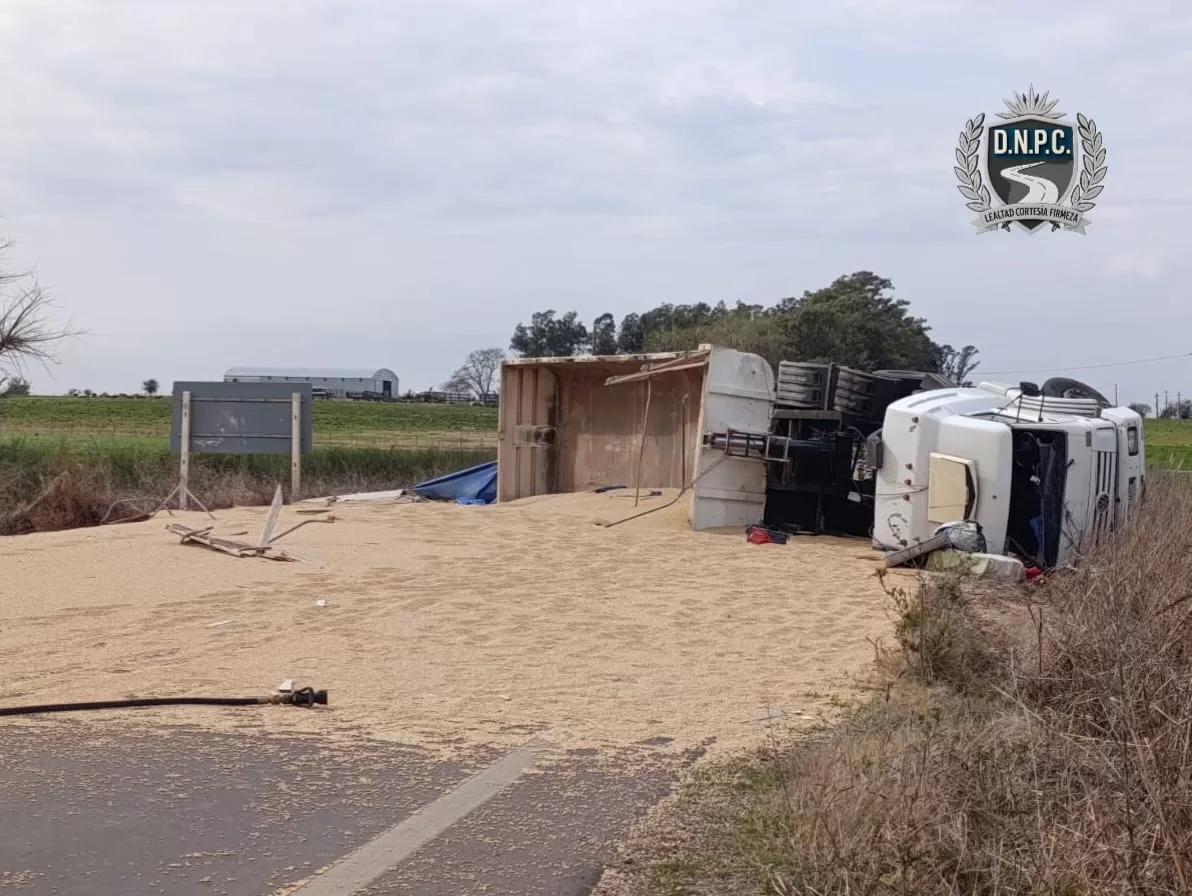 Vuelco de camión en Ruta 21 deja un lesionado y provoca desvío del tránsito en Conchillas-Un nuevo siniestro de tránsito protagonizado por un vehículo de carga se registró este lunes 18 de agosto, a las 10:35 horas, en la Ruta 21, a la altura del kilómetro 221.500, en las inmediaciones de Conchillas. Según información preliminar, un camión con zorra cargado de soja despistó y volcó sobre la senda de circulación, por causas que aún se encuentran bajo investigación. El vehículo era conducido por un hombre de 47 años, quien resultó politraumatizado y fue asistido por los servicios de emergencia en el lugar.
